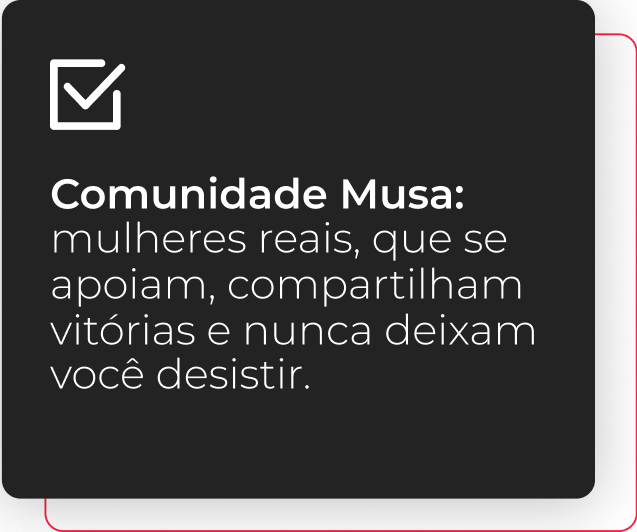 Mas a verdade é que esse dia só chega quando você decide agir. Você já tentou sozinha… e sabe que não funciona. Agora é hora de ter clareza, método e apoio para finalmente ver resultado. A próxima Musa pode e deve, ser você. E tudo começa com um clique.